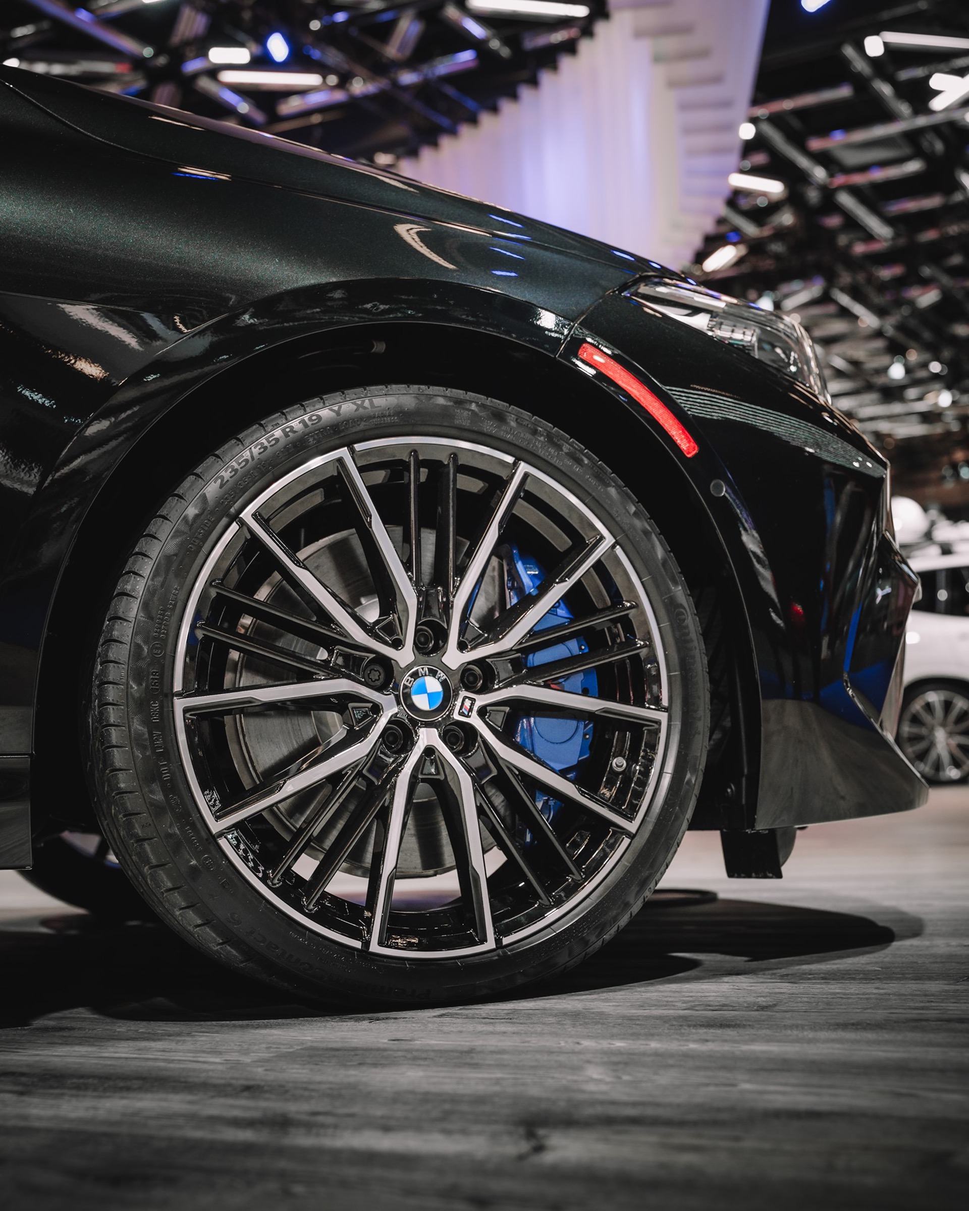 The look of the BMW M235i Gran Coupe, which is painted in Sapphire Black, is rounded off perfectly by the 19-inch light-alloy wheels, double-spoke style 552 M Bicolor, which, in addition to glossy surfaces, also have some black surfaces.