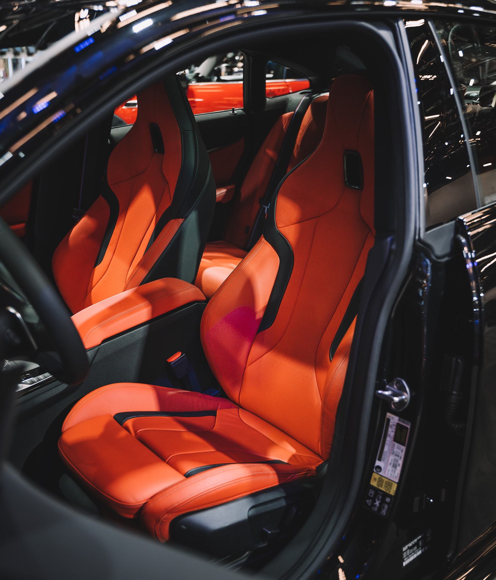 The darkest BMW 2 Series Gran Coupe to date relies on color in the interior with the perforated Dakota leather upholstery in Magmarot. The red leather goes to emphasize the cool look of the optional M sports seats.