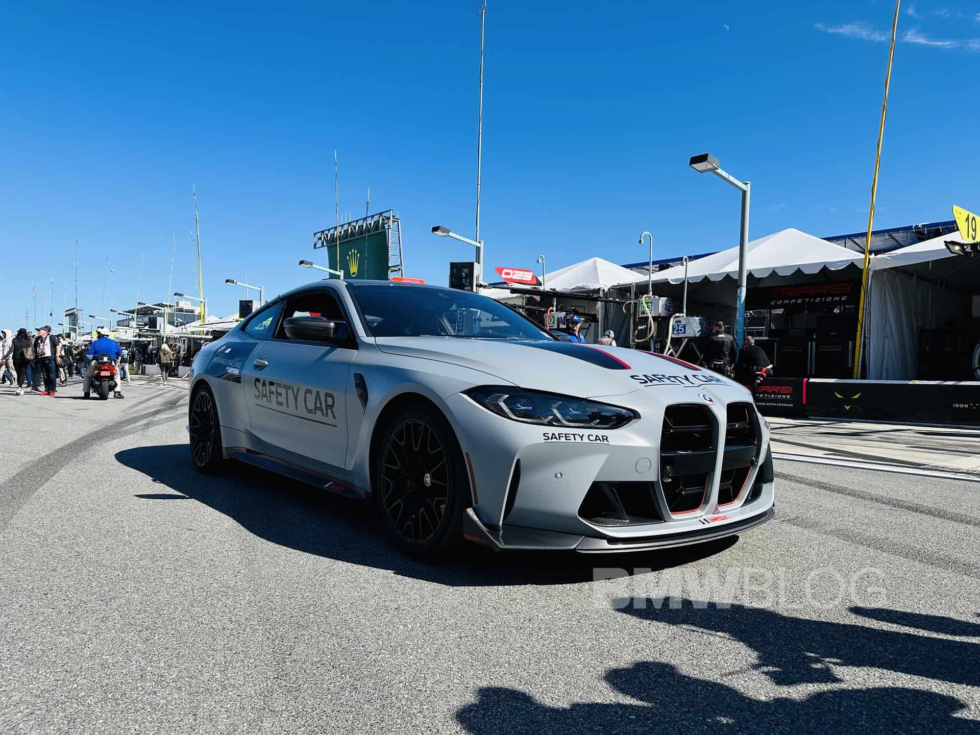 It goes without saying this isn’t one of the 1,000 cars BMW is making for customers, so it’s either a prototype or an M4 CSL built specifically to serve as a Safety Car. Either way, we’re noticing it has the previous-generation infotainment. It wasn’t until earlier this week when the company announced it will install iDrive 8 in all 4 Series models with cars manufactured from spring, so the CSL uses the old setup.