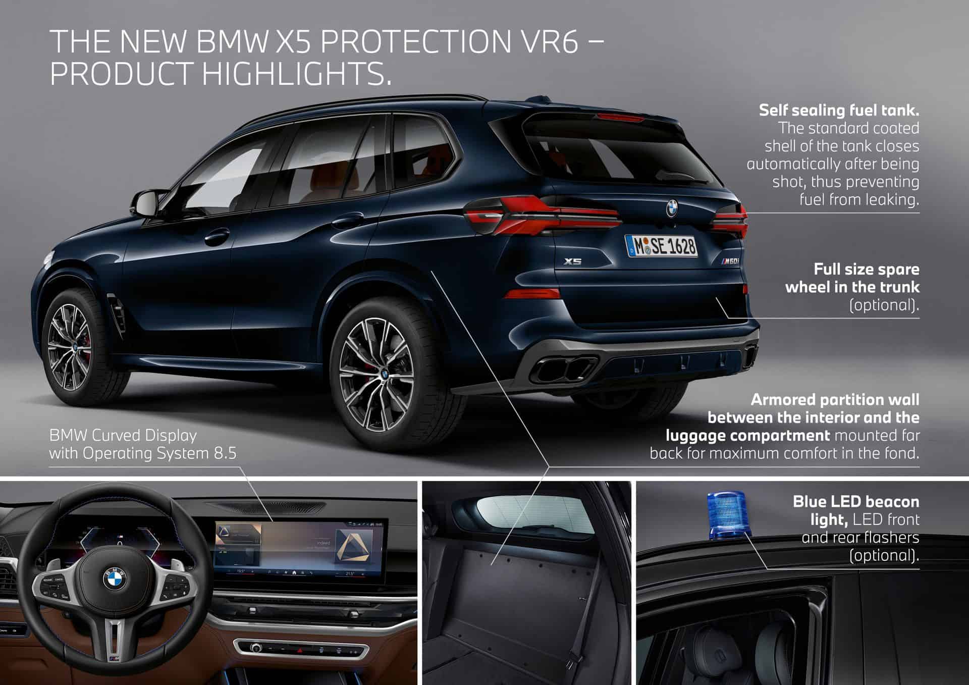 BMW makes the X5 Protection VR6 in South Carolina at the Spartanburg factory where the regular X5 is assembled. However, there’s a dedicated team in charge of modifying the vehicle during a process called “craft manufacturing.” Just like the standard model, you can have it with an Individual paint. Deliveries are slated to commence in February 2024 and these facelifted models will all come with iDrive 8.5. After August, the standard X5 will be assembled with the newer infotainment system featuring QuickSelect.