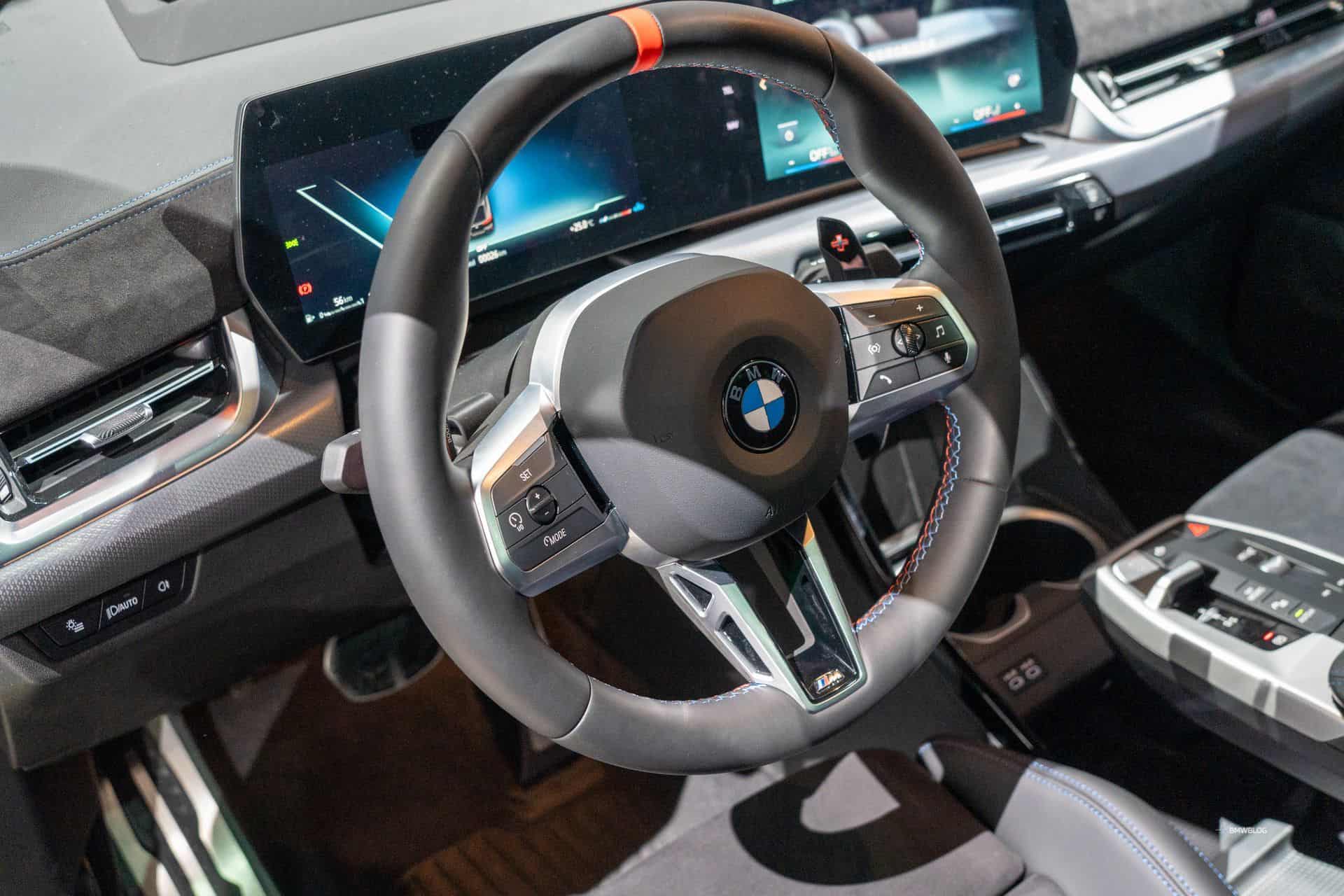 It doesn’t happen too often for a BMW to change so much from one generation to another. The “U10” looks totally different inside and out than the “F39” it replaces. It’s also significantly larger, so much so that you can have it with these flashy 20-inch wheels that don’t look like overkill. The red brake calipers provide a contrasting effect, as does the black finish of the M-specific side mirrors.