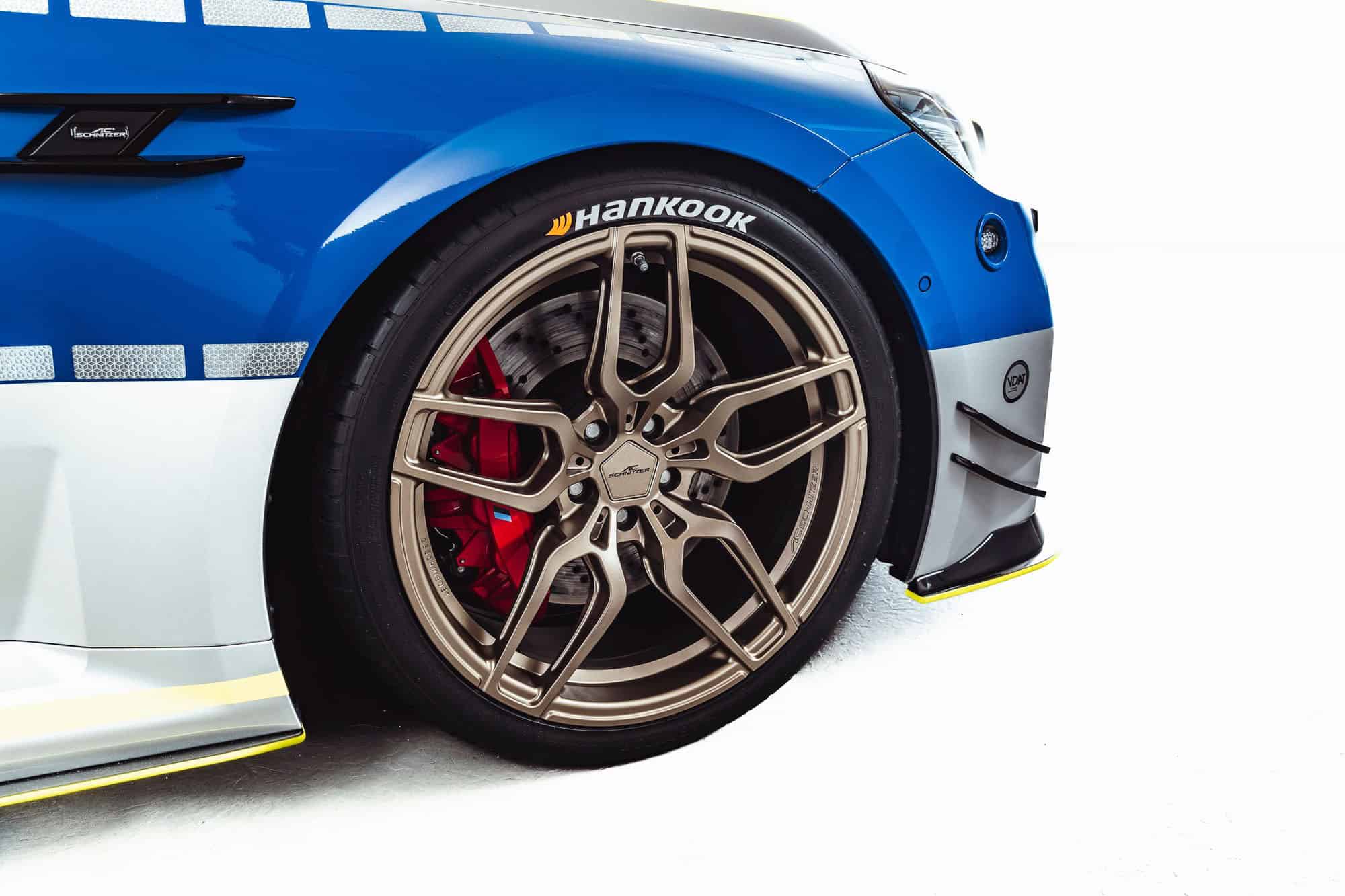 Elsewhere, the compact sports car has received a height-adjustable suspension, lowering the ride height by up to 35 millimeters (1.37 inches). The forged wheels, measuring 20 inches at the front and 21 inches at the rear, are lighter than the original alloys. The new shoes have a copper finish, although AC Schnitzer calls it “TechGold.”