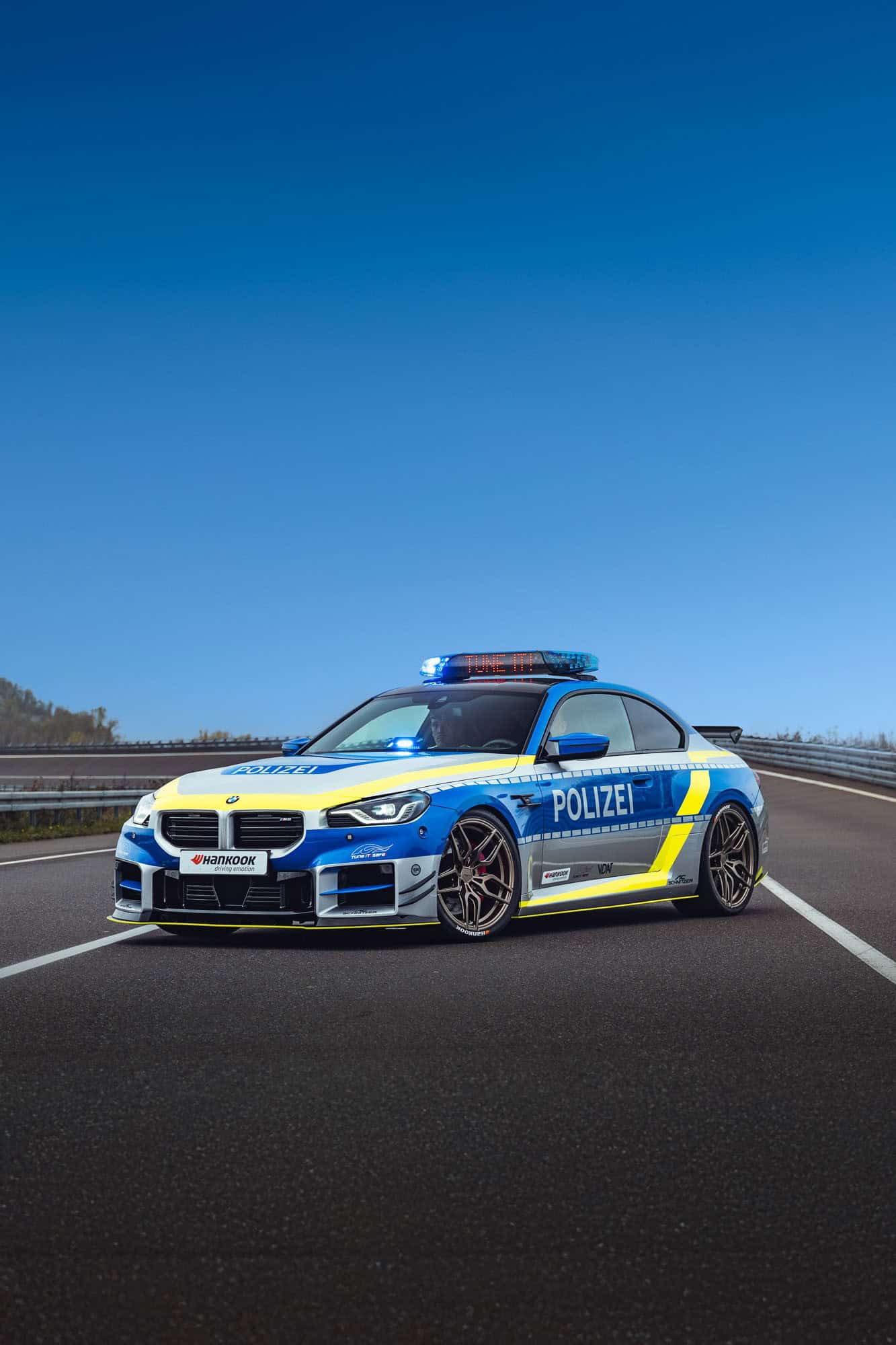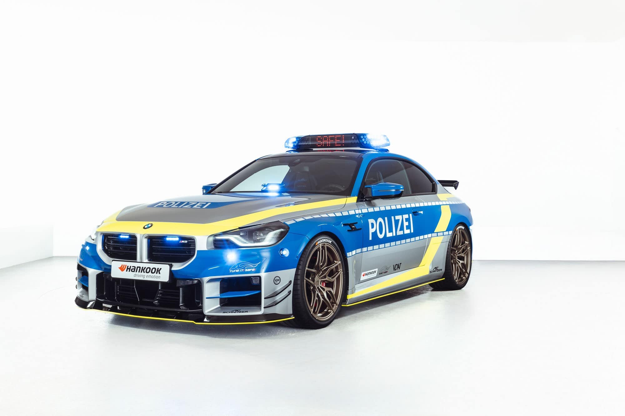 This G87 is essentially a typical BMW M2 by AC Schnitzer but with a full body wrap to mimic a police car. To drive the point home, a light bar is installed on the roof, and the tuner added LEDs within the kidney grille. There’s radio equipment and yet another light atop the dashboard as if the car wasn’t already flashy enough.