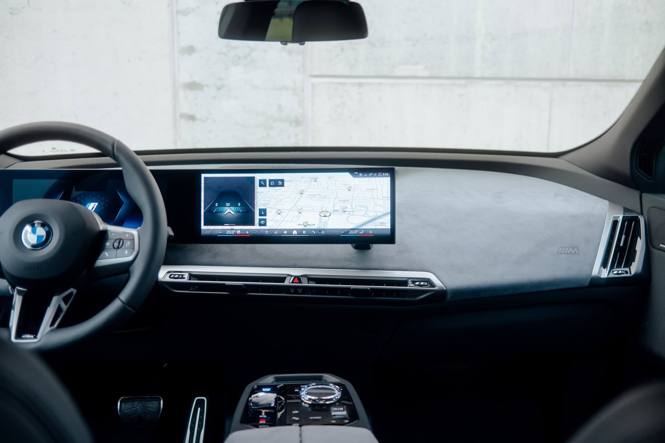 Inside, the most notable change from the mid-cycle update is the addition of M multifunction seats. As shown here, they come wrapped in perforated microfibre/Sensatec as standard, though full leather remains an option. BMW has snuck in another M badge on the passenger side of the dashboard, but only in vehicles equipped with the M Sport Package. That pack also swaps in a conventional three-spoke round steering wheel, while the base model retains its quirky hexagonal two-spoke setup.