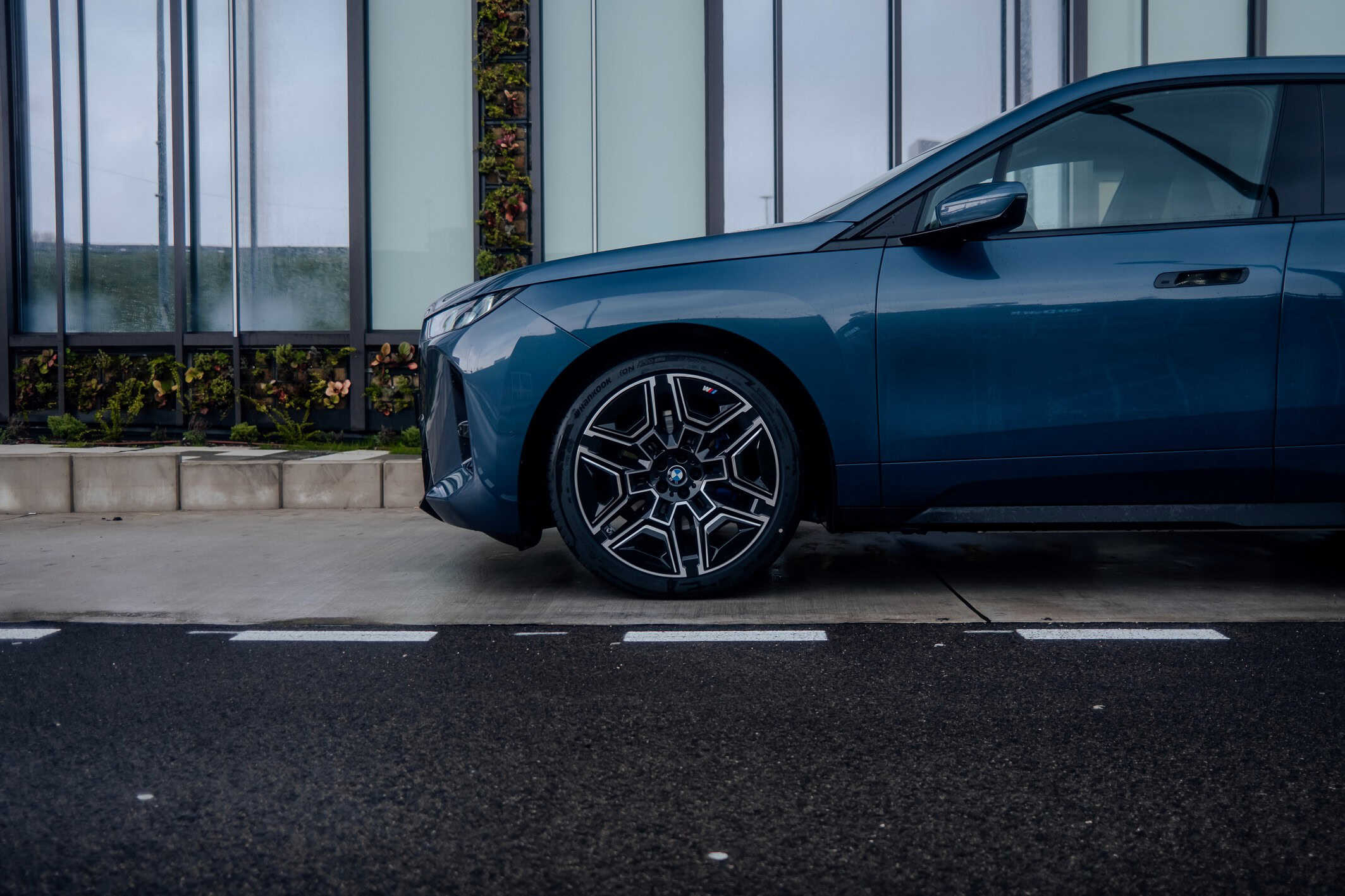 The iX xDrive45 appears here with the optional M Sport Package, a first for the model. BMW has also given the electric luxobarge one of the new colors introduced with the Life Cycle Impulse: Arctic Race Blue. It pairs nicely with the 22-inch wheels, unless you’re feeling adventurous enough to opt for the fancier 23-inch set. The kidney grille’s illuminated contour is standard on the M Performance model but available at extra cost on lower trims such as this one.