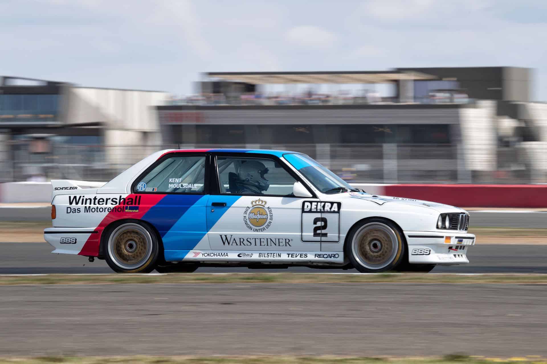 Moving up a decade, the BMW E24 635CSi Group A Competition Coupe also took to the track. This big, straight-six powered coupe was a stalwart of the European Touring Car Championship in the early 1980s, winning races thanks to its mix of power and stability. At Silverstone, the 635CSi carried that same Group A spirit, its long hood and low roofline still looking purposeful decades later.