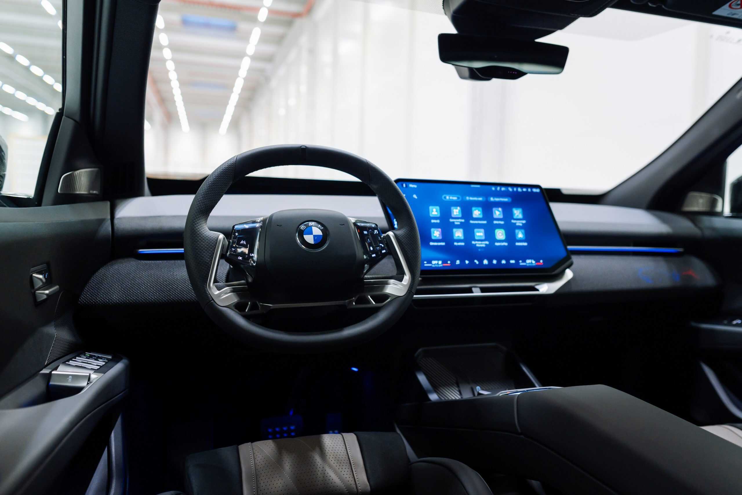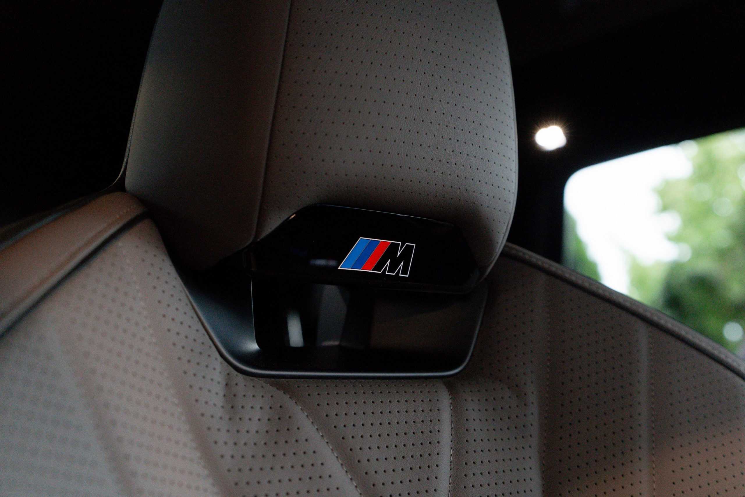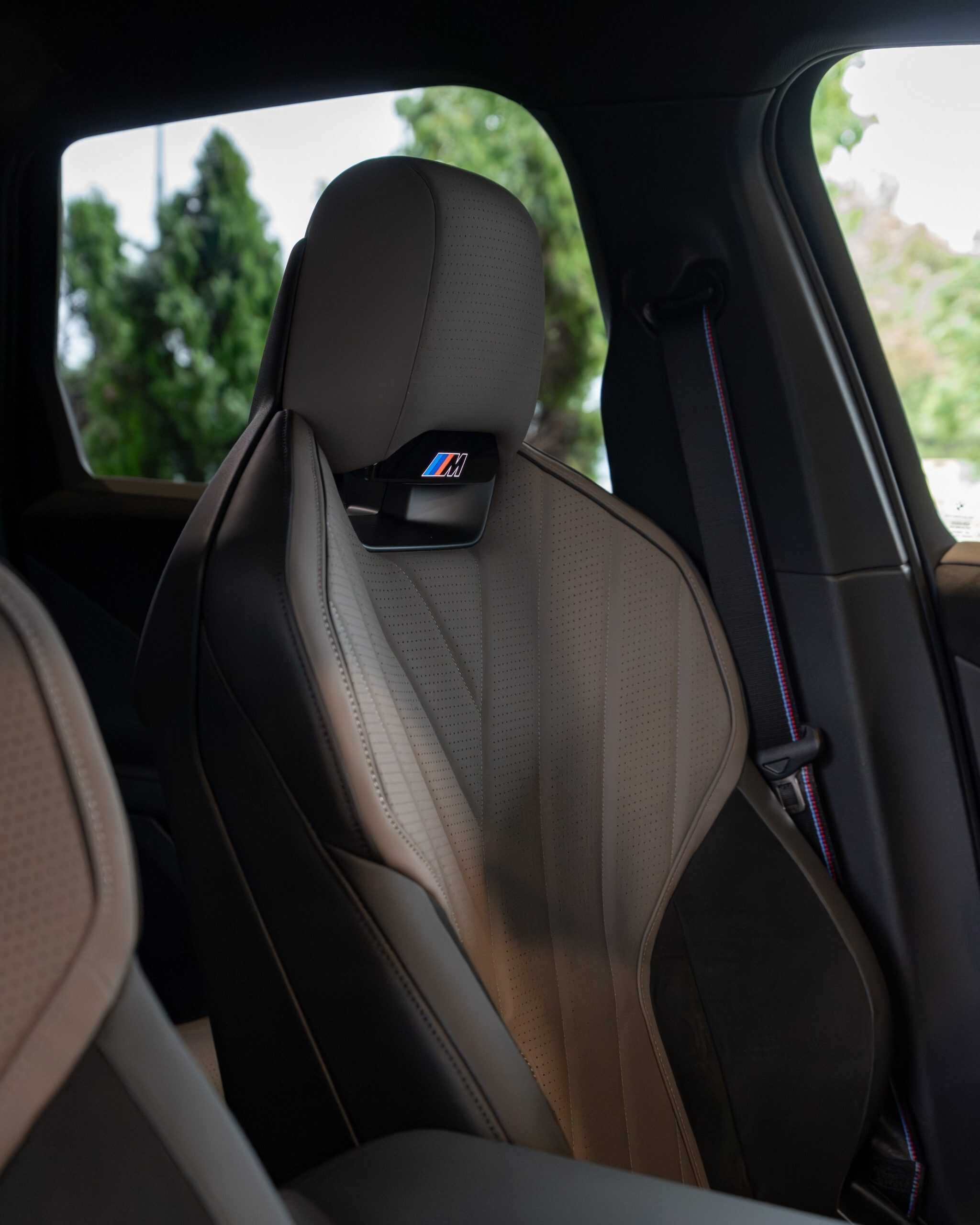 Inside, this iX3 reveals Individual upholstery in Adelaide Grey Bicolor with genuine leather. The upgraded seats feature integrated headrests with an illuminated M logo, even though this is not a full-fledged M model. From what we’ve heard, BMW plans to introduce M Performance and true M variants later in the vehicle’s life cycle. The M-themed seatbelts proudly display the three iconic stripes, missing from the 50 xDrive model for the U.S.
