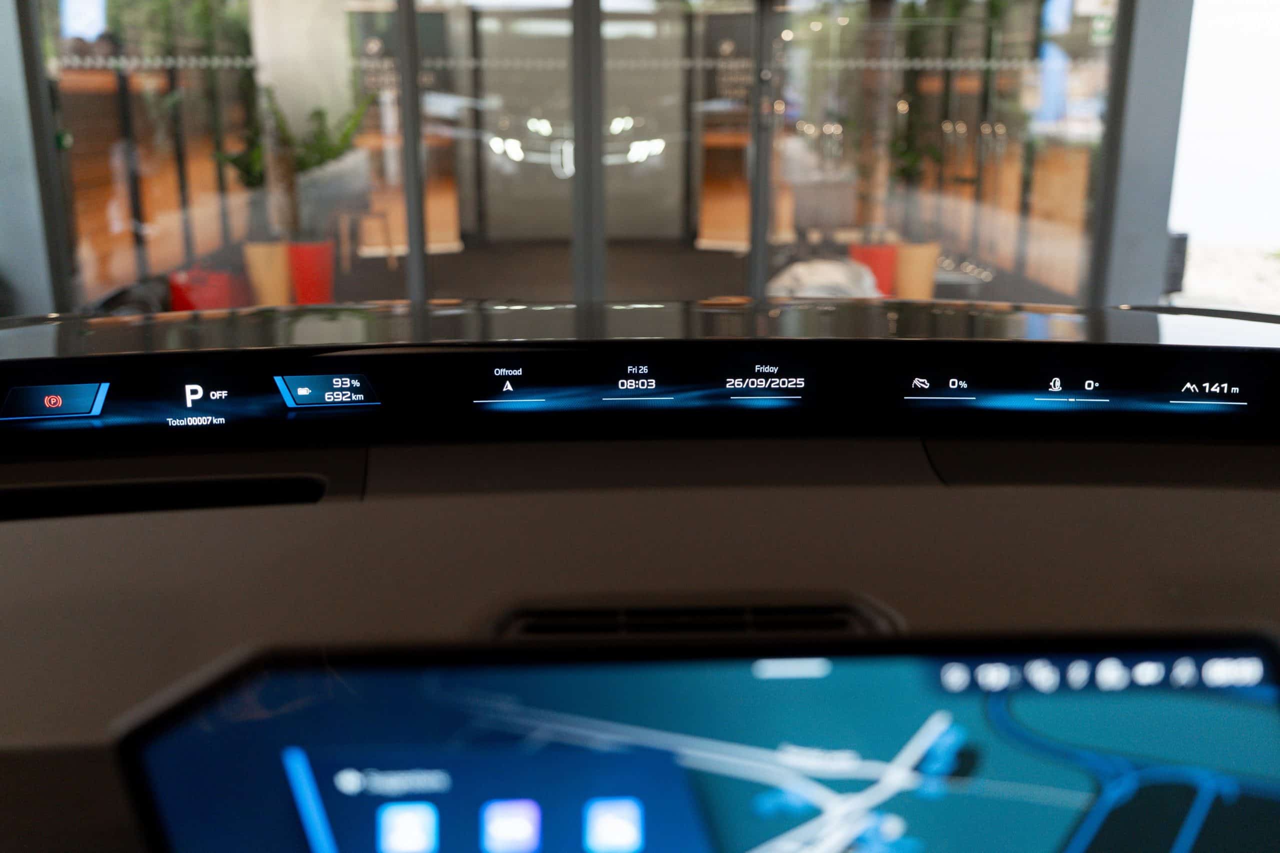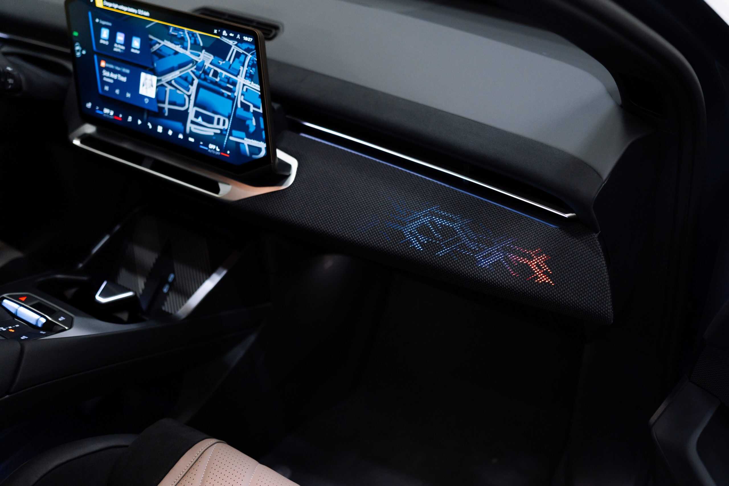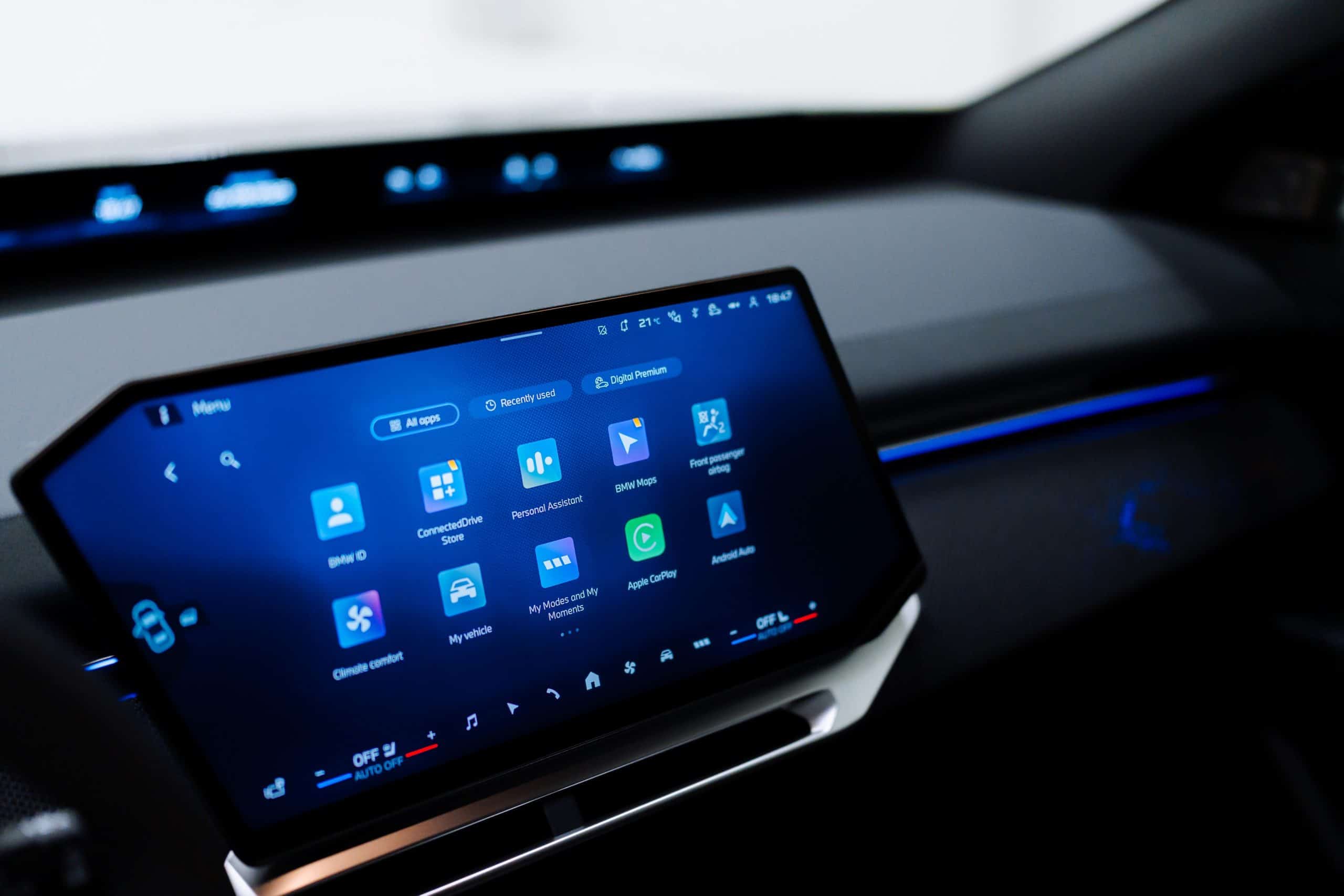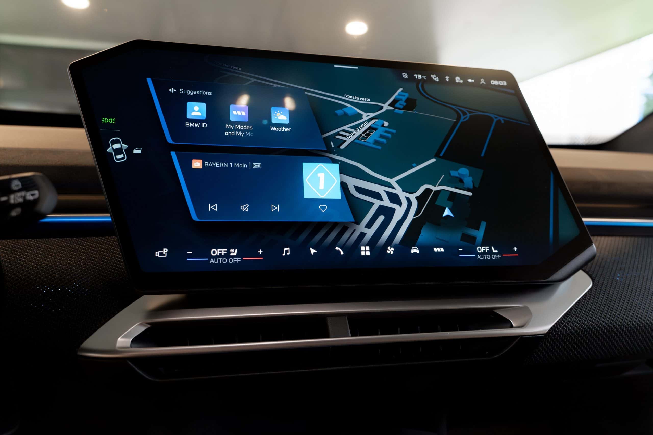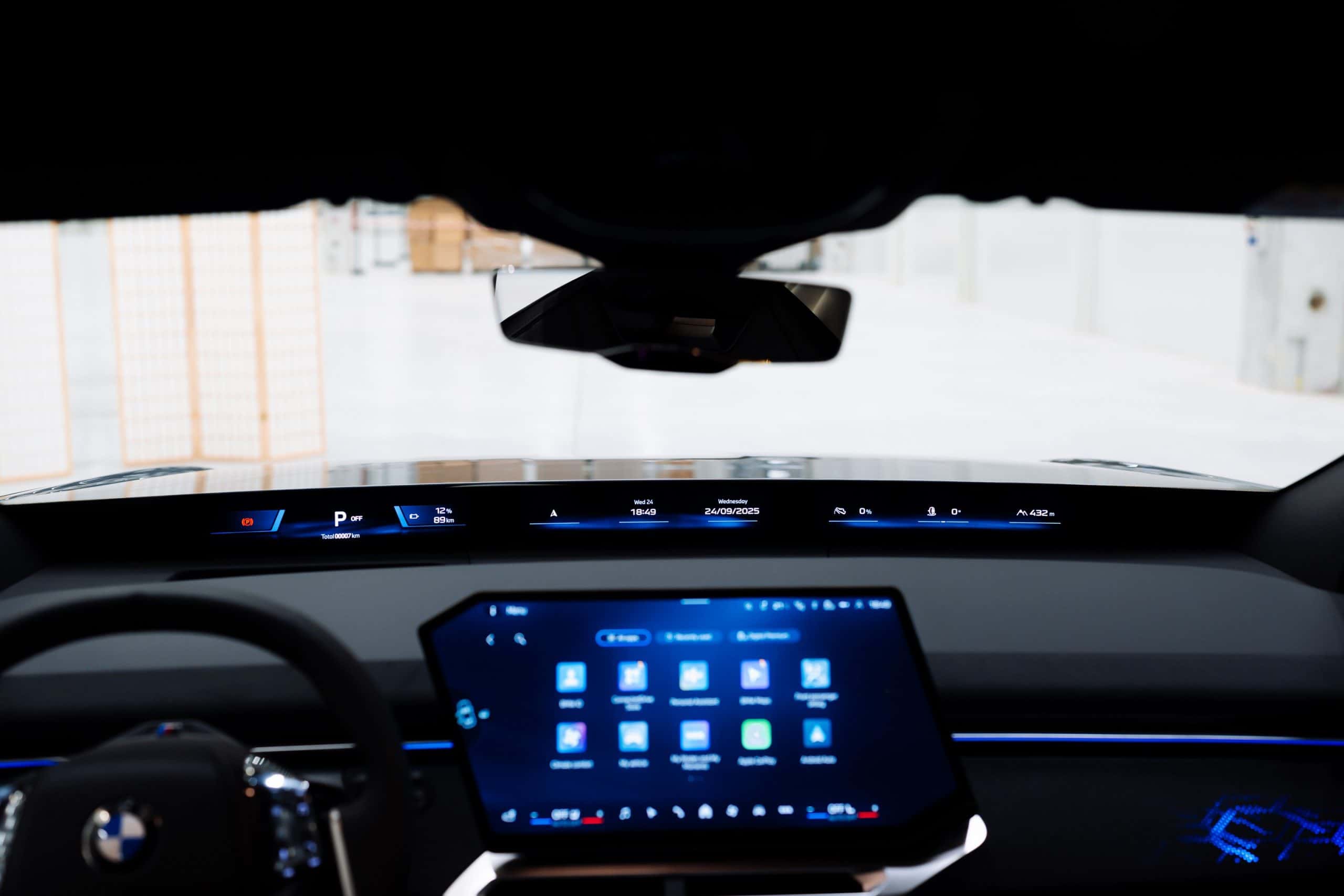 BMW cut the dashboard to fit a newly developed 3D head-up display, positioned just ahead of the Panoramic Vision projection at the base of the windshield. BMW believes that these two displays, together, can fully replace the traditional instrument cluster. The iDrive rotary knob is also gone, although some physical controls remain.