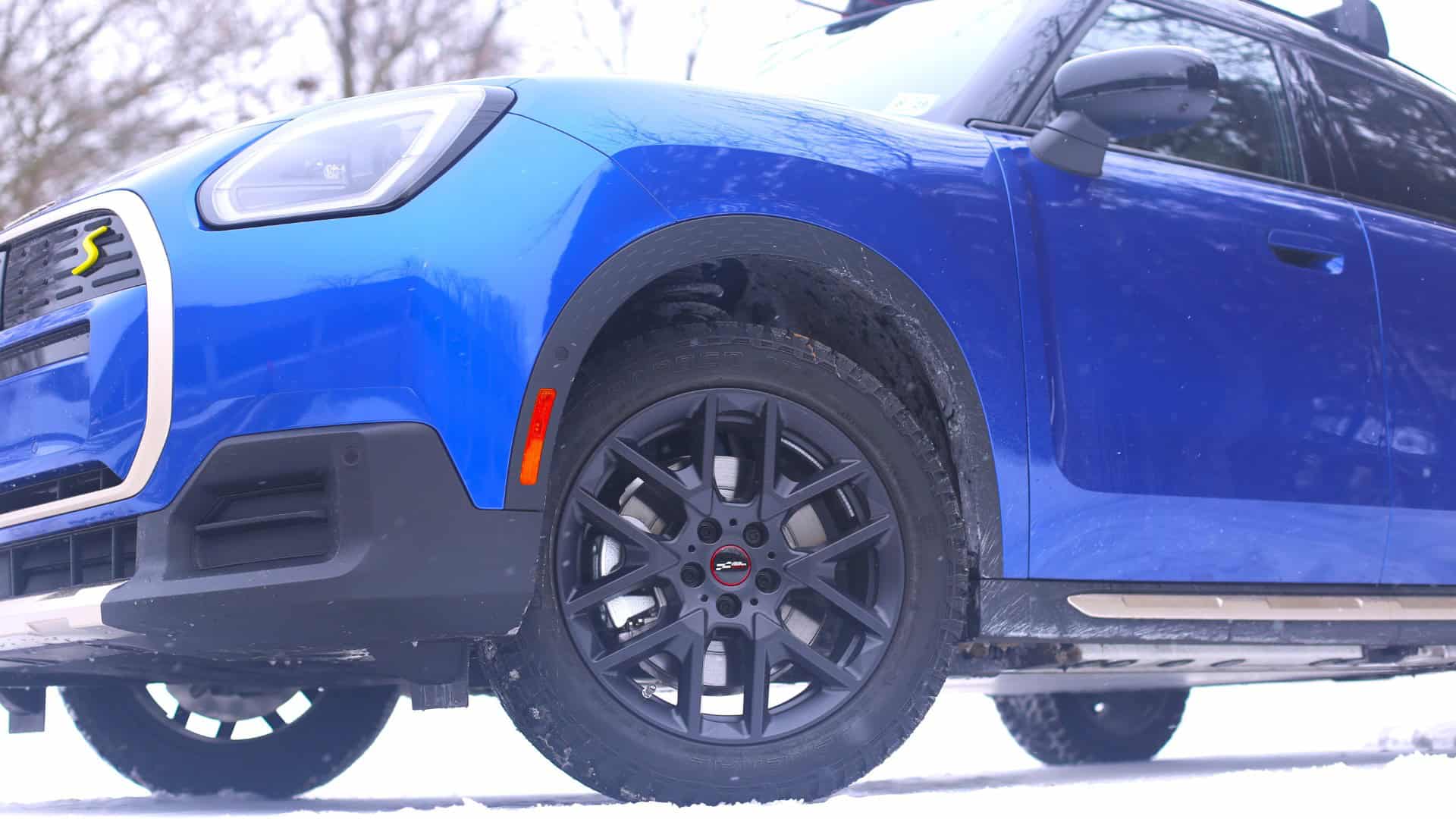The MINI Adventure Plus Package sets you back quite a bit more: $3,555. It also only adds one thing: new wheels and tires. Dig the new shoes: JCW Y-Spoke wheels in Frozen Midnight Grey, dubbed Style 945. More importantly, the new wheels come wrapped in all-terrain tires, General Grabber AT3s. The wheels alone cost $2,465. So, you save exactly $10 with the MINI Adventure Plus Package, compared to ordering the MINI Adventure Package and the wheels separately. What a deal!